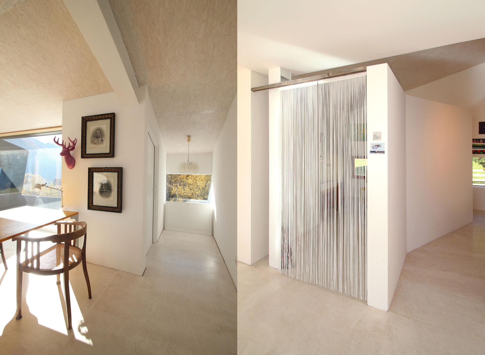// Der Bruch, die "Gletscherspalte" trennt und verbindet gleichzeitig die Bauteile und ist der zentrale Zugangsbereich zu den 4 Wohneinheiten.