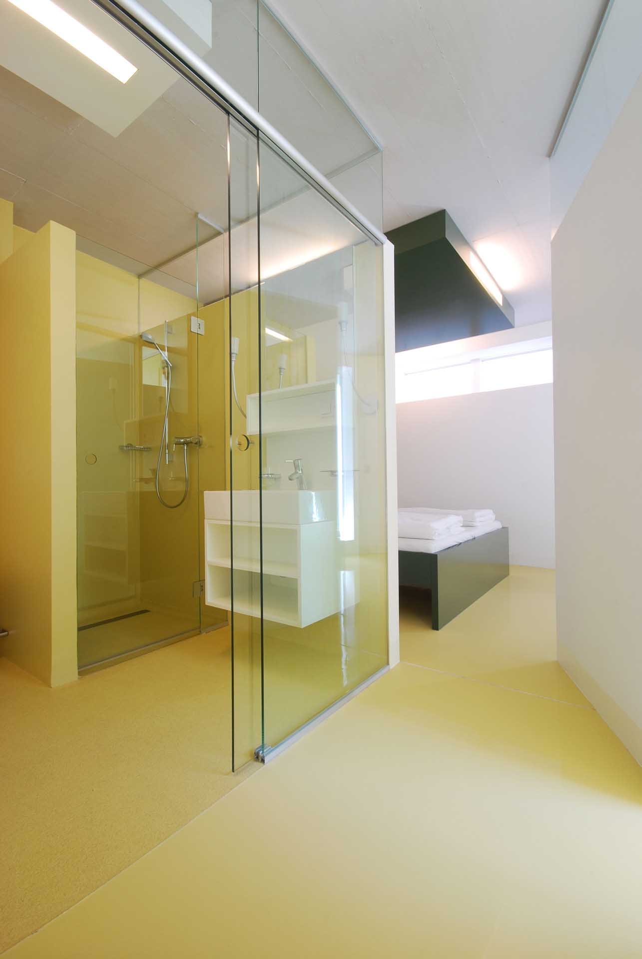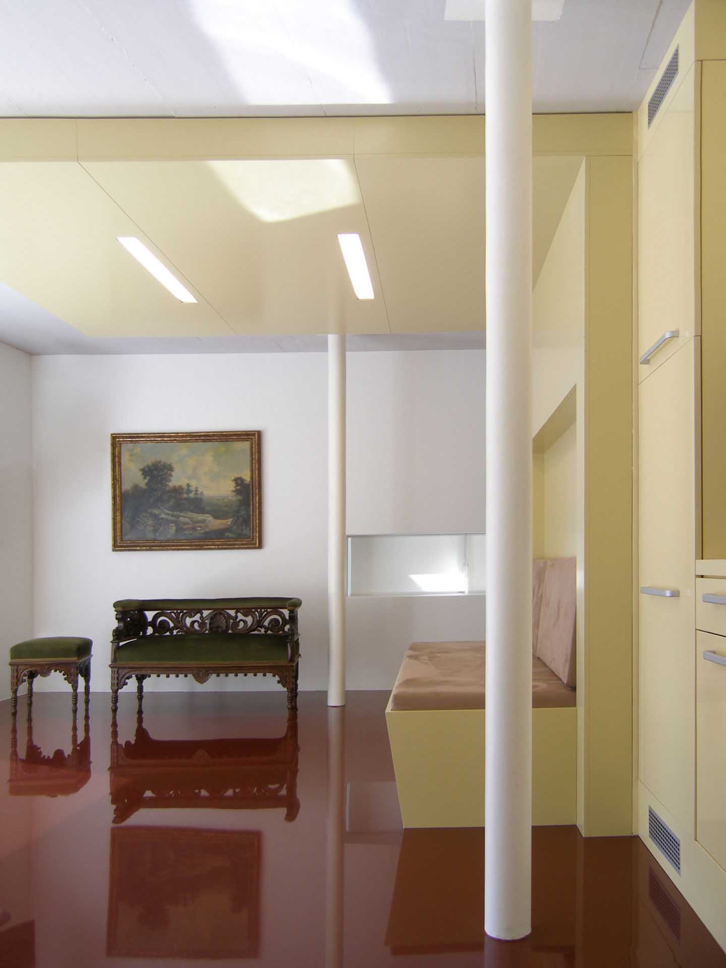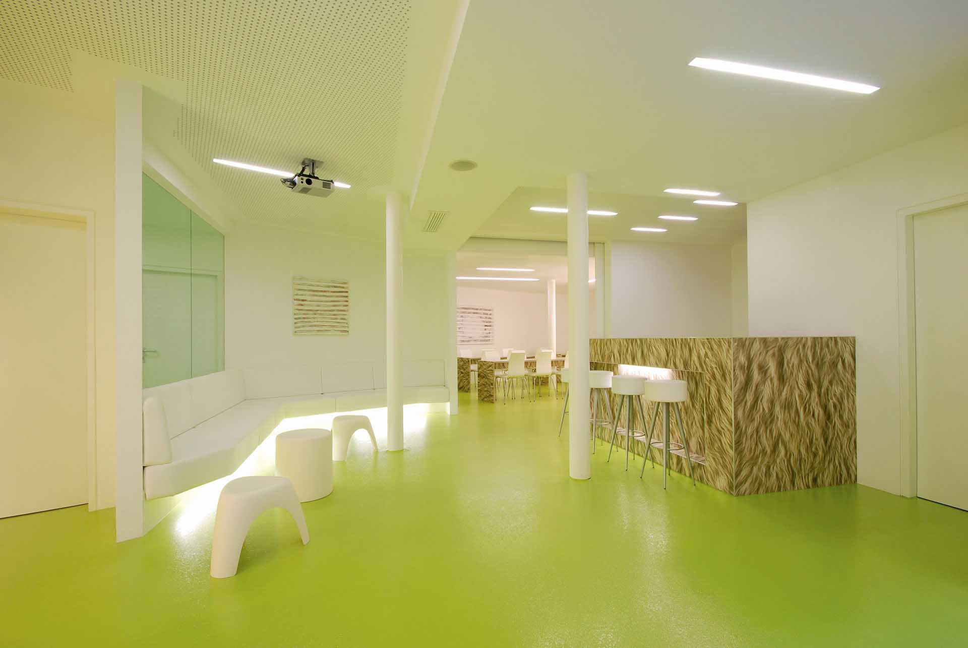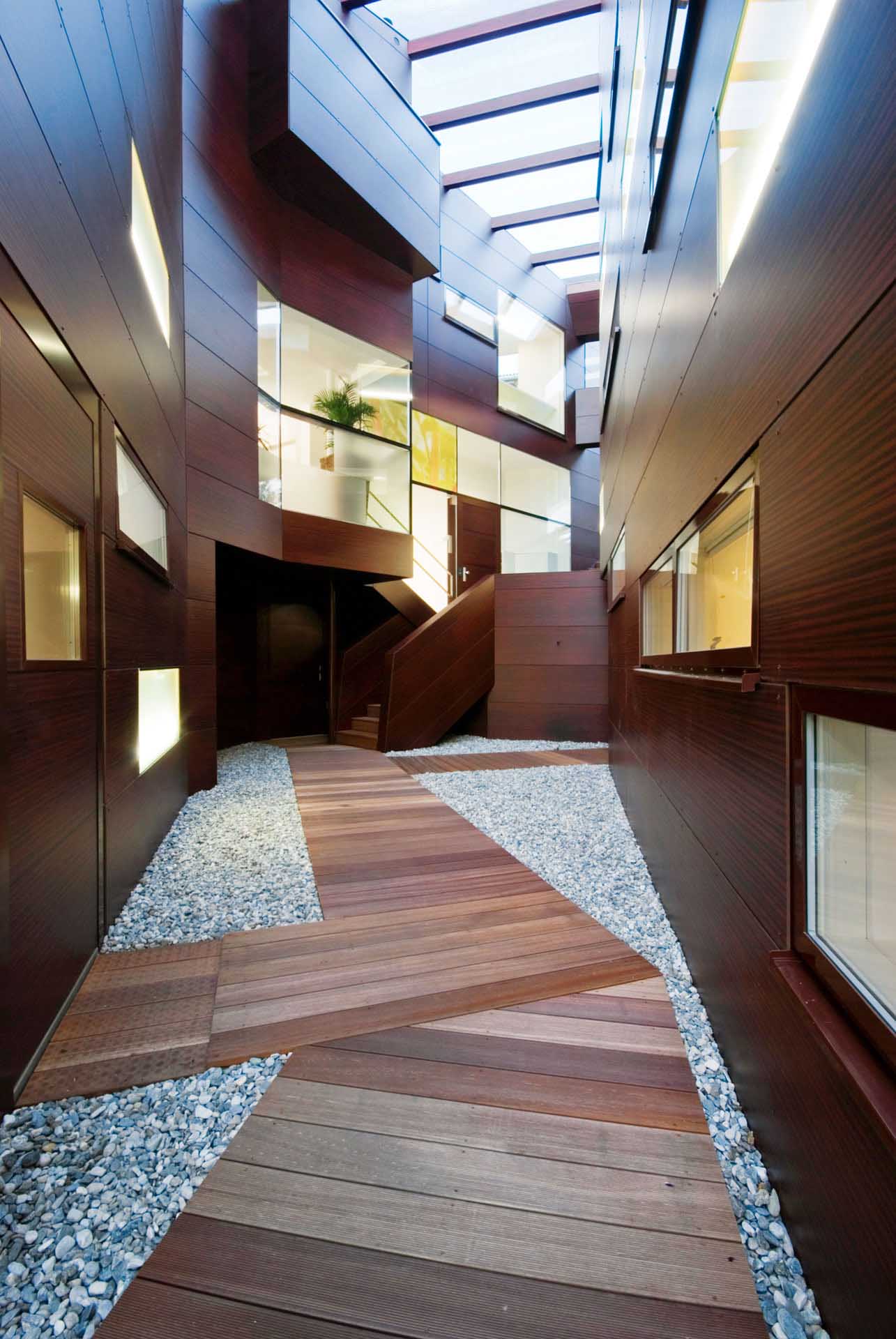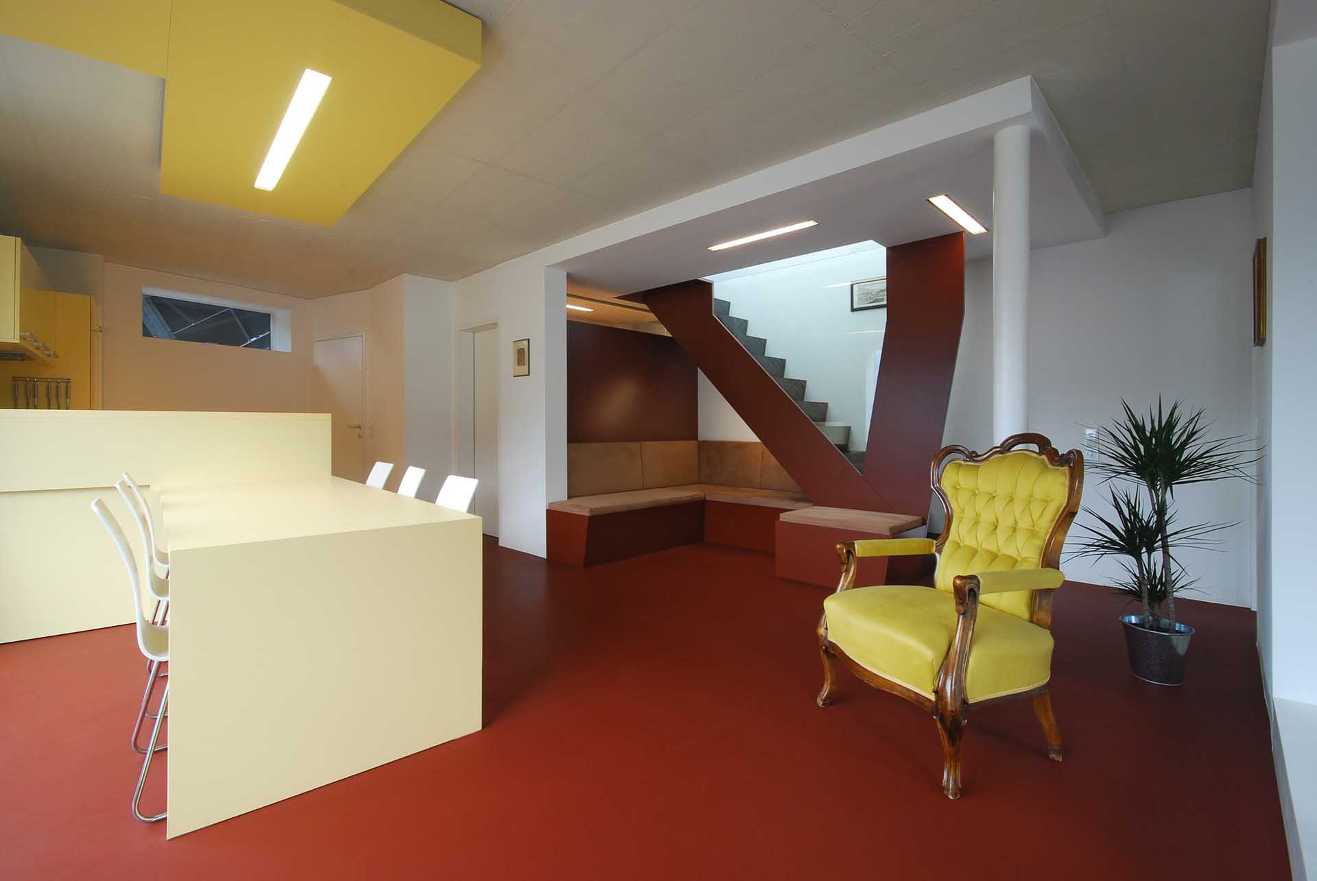 s u n resultiert in Form, Organisation, Erscheinungsbild und Orientierung aus den spezifischen Gegebenheiten des Ortes, wobei sich die Appartementanlage als kraftvolles Statement innerhalb der traditionellen und homogen kleinteiligen Bebauungsstruktur Matreis zeigen soll. Das schmale, sehr steile L-förmige Hanggrundstück, diente nicht nur als Ausgangslage, sondern zugleich als konzeptioneller und struktureller Impetus. Dem zu Folge zeigt sich s u n als terrassierter viergeschossiger Gebäudekomplex, der die weit gefächerten Höhenlinien des Geländes inkorporiert und damit auch den Höhenversprung von 25 Metern nachvollzieht. Über dem - gegenüber der am Hangfuß verlaufenden Straße - um 75 cm abgesenkten Untergeschoss (Funktion: sun-office, sun-lounge mit Veranstaltungsräumen) staffeln sich drei Wohngeschosse mit insgesamt neun Wohnungen (sun-appartements), die so flexibel konzipiert wurden, dass sich je nach Bedarf Appartements zu unterschiedlich großen Einheiten kombinieren lassen und die Verwendung hinsichtlich Verkauf, Vermietung oder kurzfristiger Nutzung im Boardinghouse Charakter entsprechend der individuellen Anforderungen und spezifischen Nutzerprofile vorgenommen werden kann. Durch die terrassierte Konfiguration des Gebäudes konnten den Wohnungen auf allen Ebenen natürliche Freibereiche zugeordnet werden, alle Einheiten weisen hochwertige Außenzonen mit Balkonen oder Loggien auf. Das interne Erschließungssystem von s u n geht über den rein funktionalen Anspruch hinaus: der Weg wird Ort - innen liegende Piazzas und Lichthöfe weiten den Blick, bieten Aufenthaltsqualität und verknüpfen unterschiedliche Zonen unterschiedlicher Nutzungsbestimmungen. Der Bewegungsfluss innerhalb des Gebäudes über Lifte, Stiegen, Rampen, Stege und Gänge , die terrassierten Freibereiche und eben jene Raumerweiterungen transformieren die topographische Besonderheit des Grundstücks, machen diese für den Bewohner erleb - und nachvollziehbar. Zugleich orientiert sich das interne Wegesystem an der natürlichen Lichtführung. Im Laufe des Tages vollzieht sich in Abhängigkeit vom Sonnenstand im Inneren des Gebäudes ein differenziertes und expressives Spiel verschiedener Lichtszenarien und lichtdurchfluteter Bereiche. Für die Außenhaut wurde eine Fassadenverkleidung aus FunderMax-Platten gewählt, deren rötlich braune Holzoptik das lokale Erscheinungsbild traditioneller Tiroler Holzbauten zitiert, aber neu interpretiert. Auf diese Weise soll das Gebäude in spannungsvollen Dialog mit der Umgebung treten, ohne sich dieser anzubiedern. Planungsbeginn: 2004 Baubeginn: 2006 Fertigstellung: 2008 Bautypus: Apartmentanlage / Wohnbau Wohneinheiten: 9 Büro: 1 Grundstücksfläche: 1.400 m² Nutzfläche: 1.275 m² Freifläche: (Terrassen) 570 m²