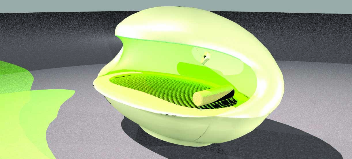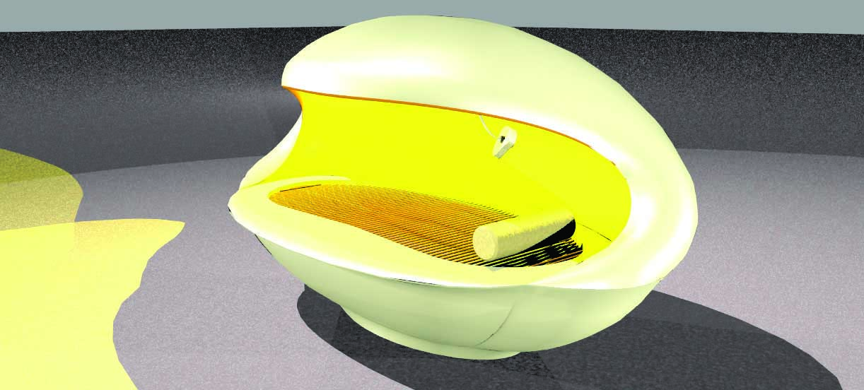 konzeptstudie für eine "relax-cockpit-liege" für licht- und aromatherapie