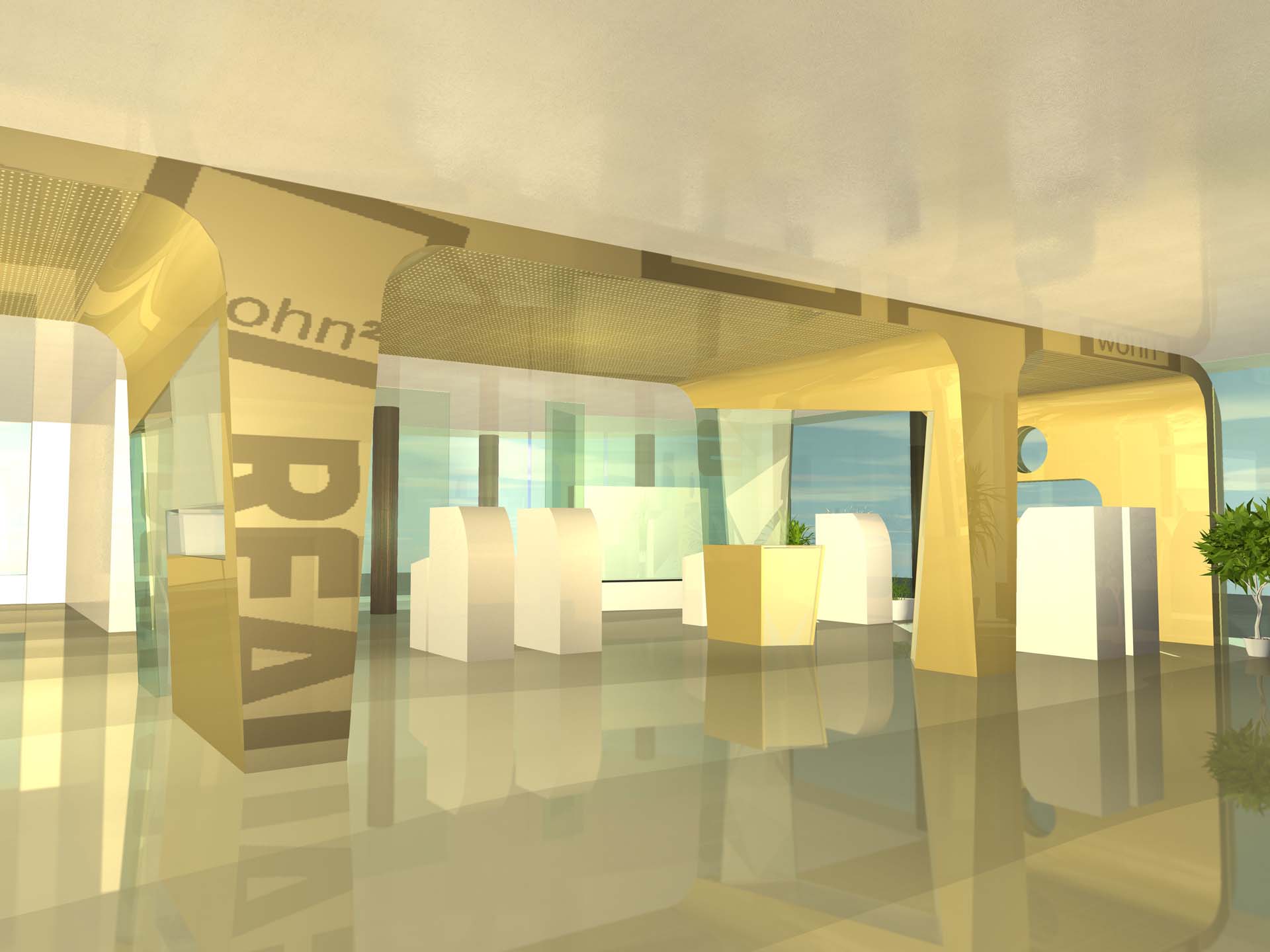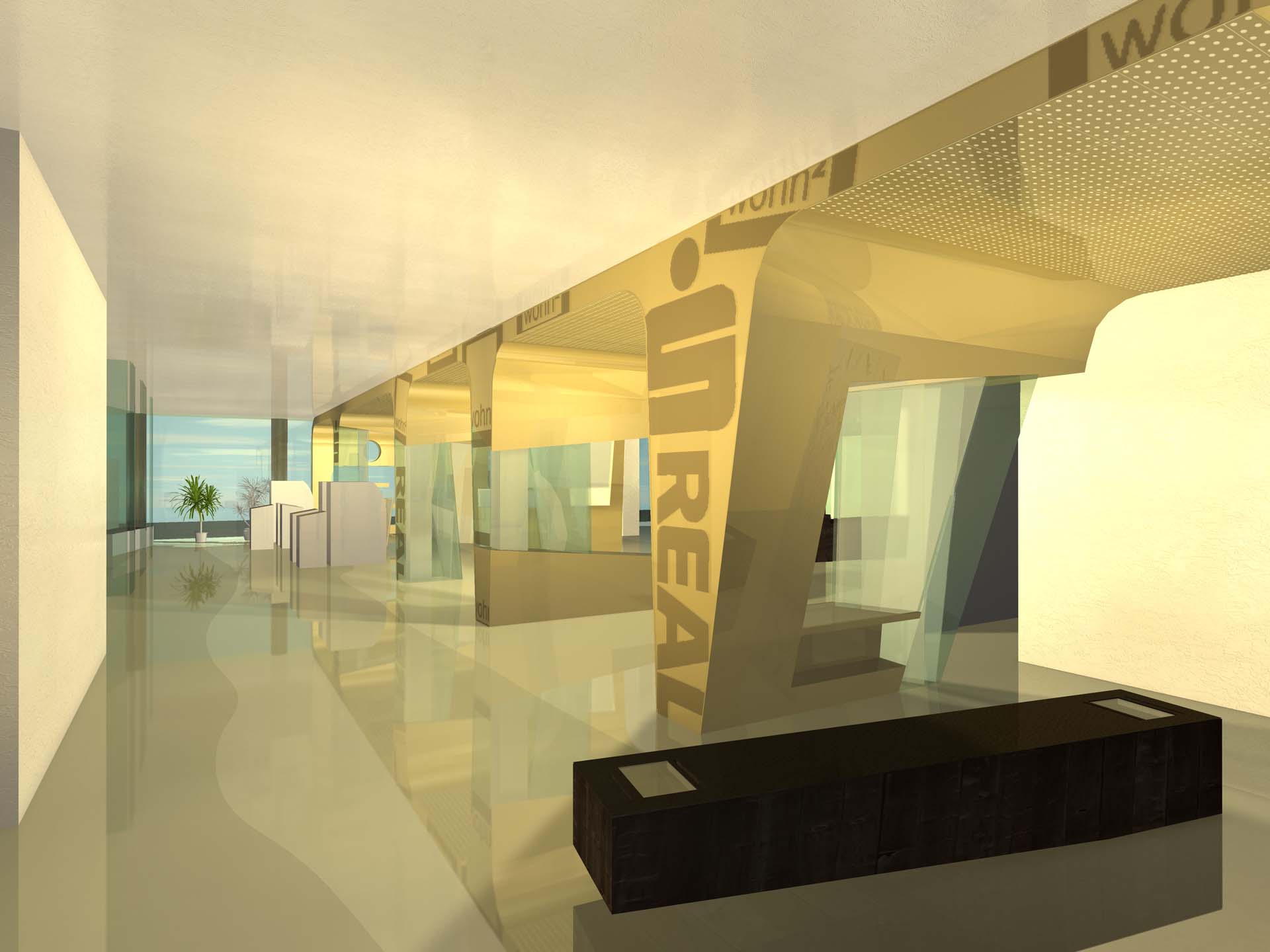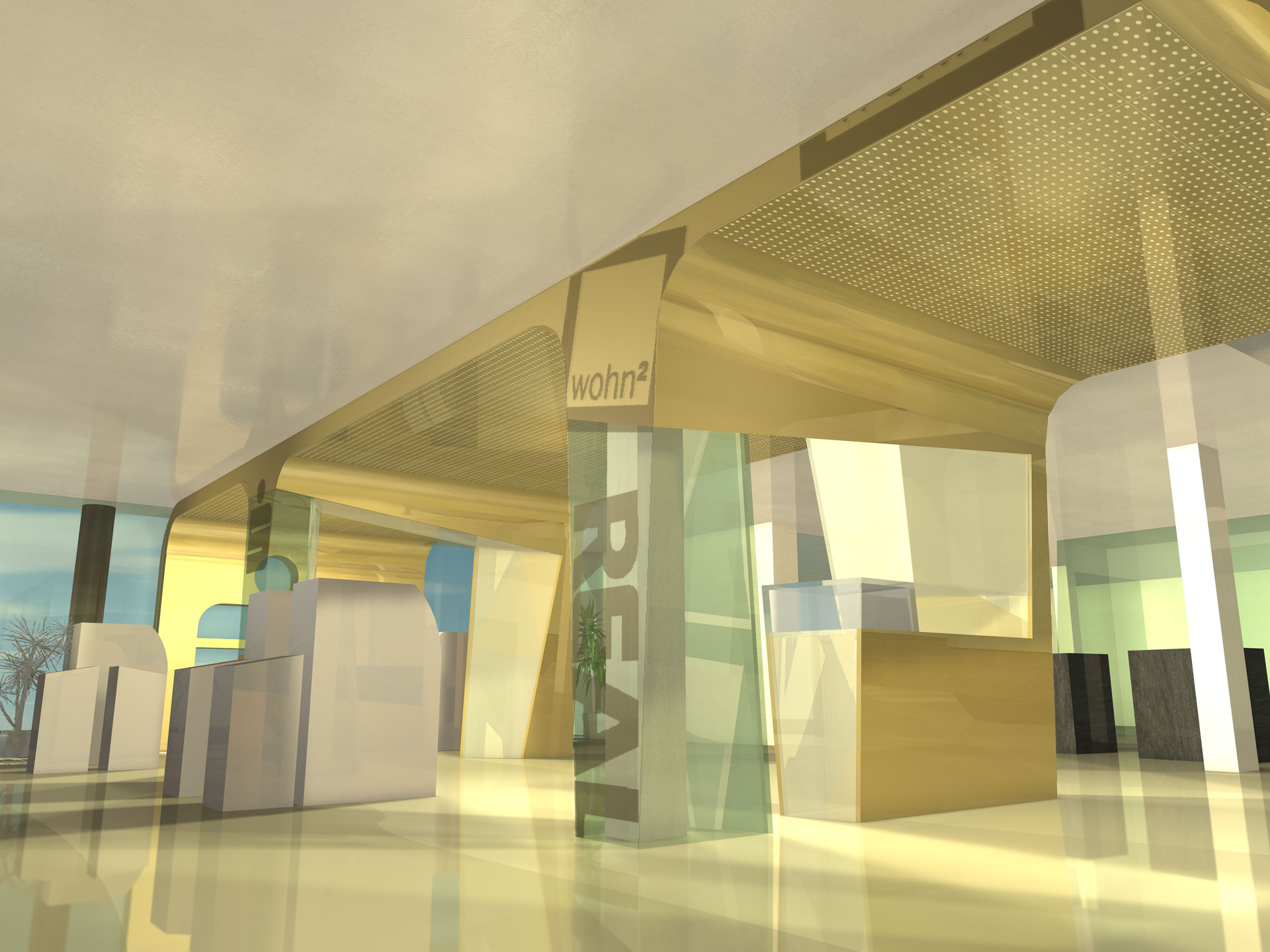 neugestaltung der kassenhalle im zentralgebäude der lienzer sparkassen ag Der bisher für diskrete Privatkundenberatungen vorgesehene Bereich soll zu einem „Marktplatz“ für alle Immobiliengeschäfte umgestaltet werden. Die dort tätigen Mitarbeiter bieten ein „Komplett-Service rund um das Thema Bauen & Wohnen". (Wohnung, Haus, oder Grundstück - kaufen, verkaufen, mieten oder finanzieren) Es sollte Freiraum und Präsentationsmöglichkeit für Immobilienangebote geschaffen werden. wettbewerbsvorgabe - zeitgenössische, moderne Innenraumgestaltung - der neu zu gestaltende Bereich sollte „Eigenständigkeit“ und „Individualität“ besitzen, aber trotzdem mit dem bestehenden Filialdesign harmonieren. - die bestehenden fünf Beratungszimmer sollten in ihrer raumbildenden Struktur möglichst nicht verändert werden - Berücksichtigung von Logo‘s und CI der Sparkasse bzw. der Fachabteilungen (sReal, Wohn², Sparkasse) – siehe Beilage