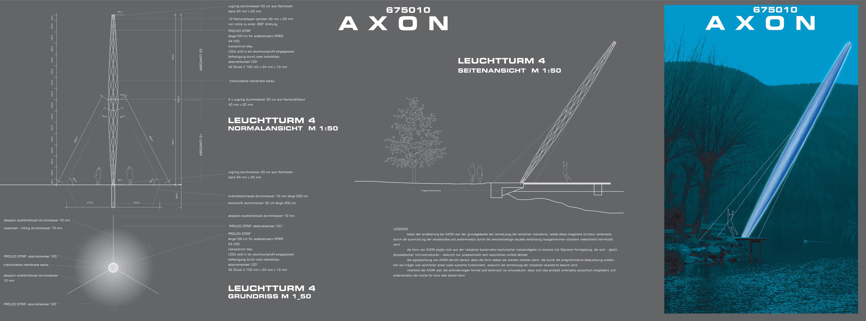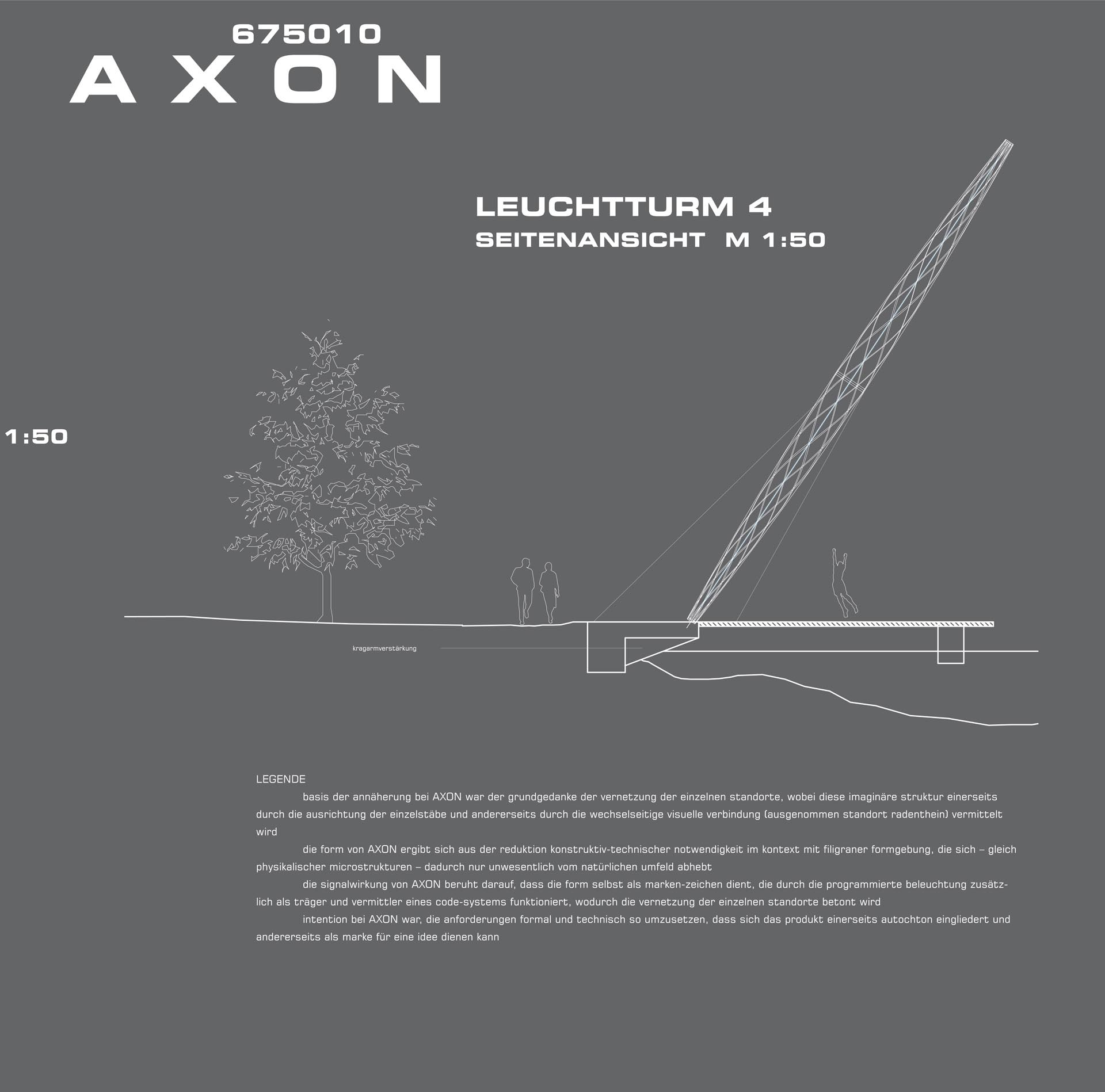 die signalwirkung von AXON beruht darauf, dass die form selbst als marken-zeichen dient, die durch die programmierte beleuchtung zusätzlich als traeger und vermittler eines licht-code-systems funktioniert, wodurch die vernetzung der einzelnen standorte betont wird
