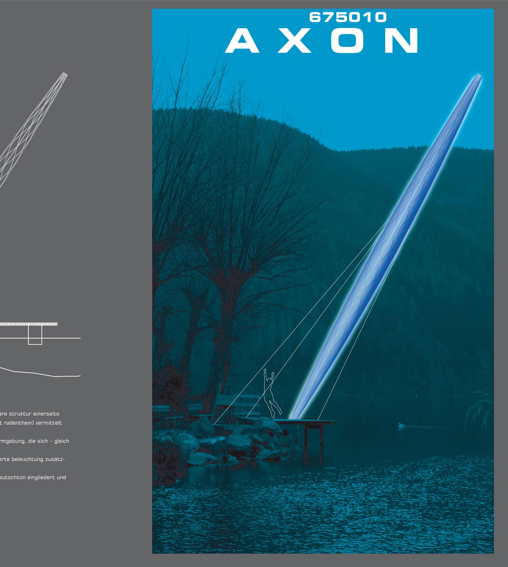 die form von AXON ergibt sich aus der reduktion konstruktiv-technischer notwendigkeit und filigraner formgebung, die sich – gleich physikalischer microstrukturen – dadurch nur unwesentlich vom natuerlichen umfeld abhebt